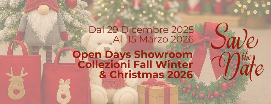 Siamo lieti di annunciare le date di apertura del nostro showroom dedicate alla presentazione delle nuove collezioni Natale 2026 e Autunno/Inverno 2027.